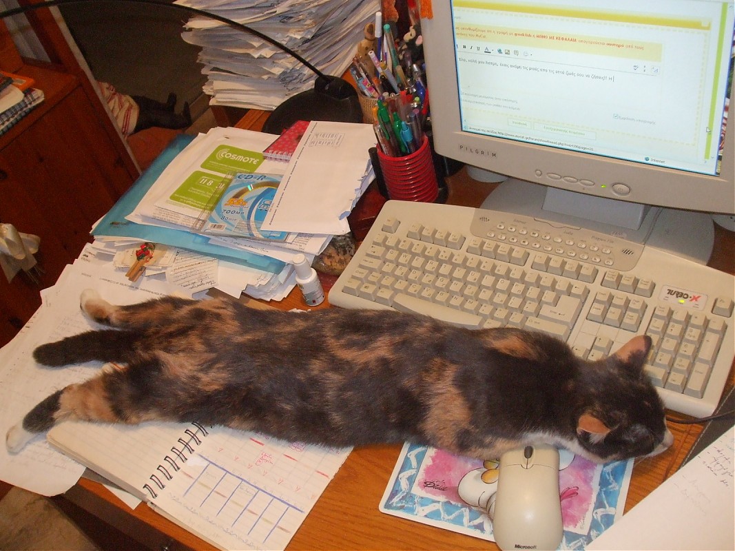 Eυχαριστούμε πολύ. Αφού ξεσάλωσε στην γατοπολυκατικία σκαρφαλώνονταις σαν την σαύρα από απέξω τώρα την έχει πέσει για ύπνο με κοιτάει και χασμουριέται:lol:
