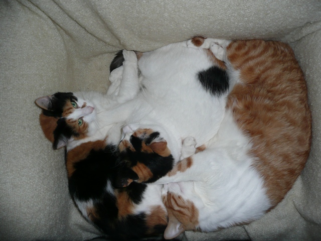 Οσο για τον Τιγρακο ελπιζω να την δεχτεί γρηγορα την μαμά σου και να μπει και στο σπίτι σας και να σε αγαπησει πολύ. Μιλαω εκ πειρας, οταν εχεις παρεα γατονια ειναι πολυ καλυτερα απο αυτα τα διποδα που ουτε ενα μπαλακι δεν ξερουν να κυνηγησουν. Κοιτα μας εμας τι ωραια παρεα που είμαστε: