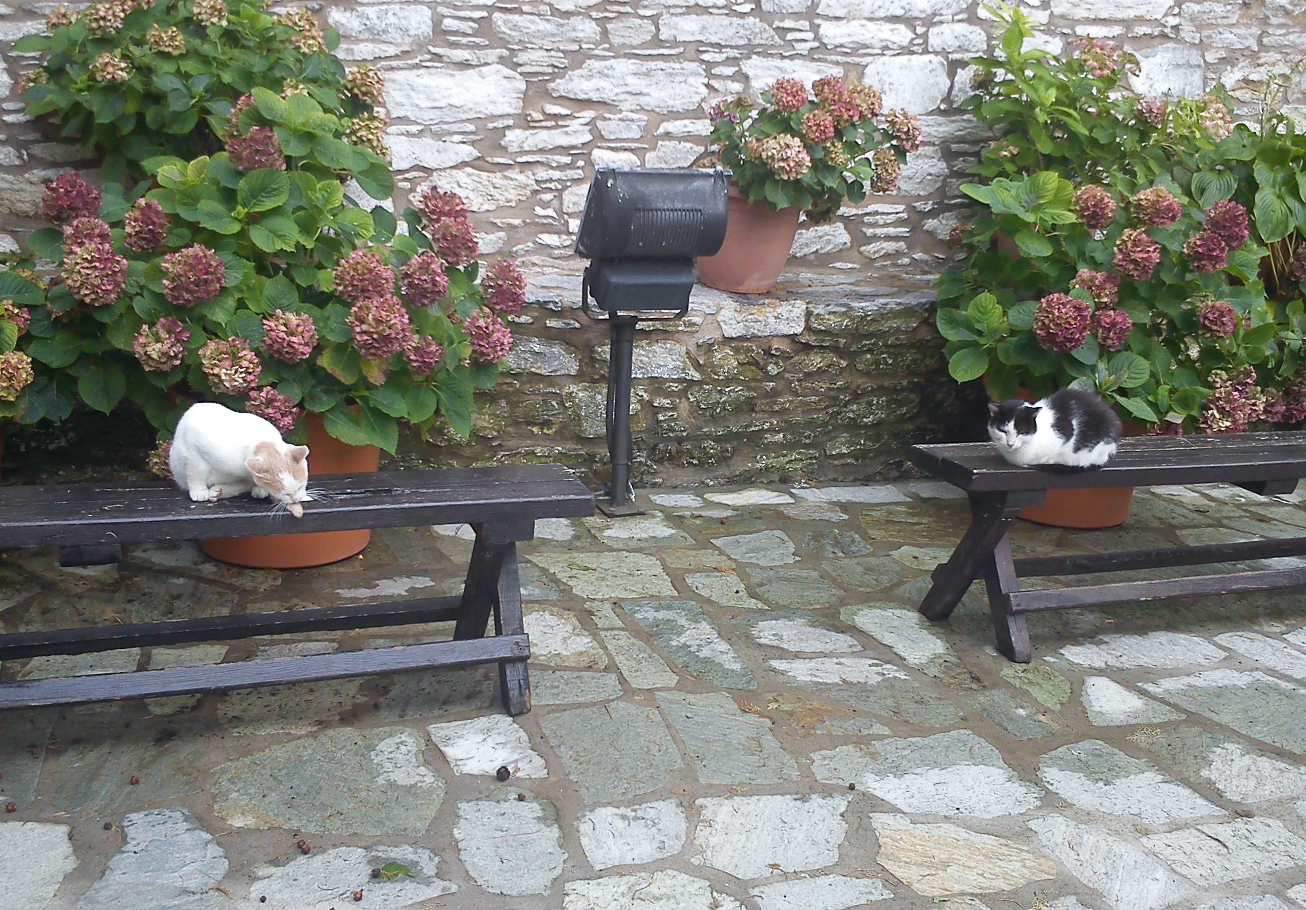 Γάτες σε μοναστήρι στην Σκιάθο.