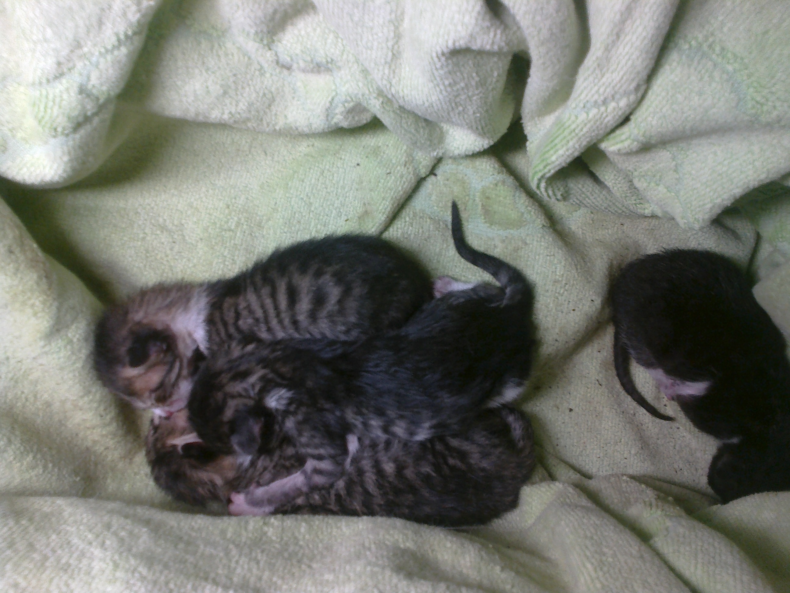 Καποιος αδαης πεταξε σε μια σακουλα σκουπιδιων 4 γατακια , εχουν δεν εχουν 2 μερες που ειναι γεννημενα!!!!!