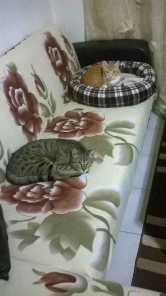 τωρα, μετα απο 6 μηνες ζουν αρμονικα και φορες φορες γλειφει κι ο ενας το κεφαλι του αλλου μεχρι να τους γυρισει και να το ριξουν στο παιχνιδι και να κυνηγιουνται! κι εχουν συνηθισει απολυτα ο ενας την παρουσια του αλλου, δεν εχουν εχθρες και αντιπαλοτητες, ο καθενας εχει το κομματι που του αναλογει και που θελει. ασε που συνηθως 2 γατες ποτε δεν εχουν ιδιο χαρακτηρα, ο μικρος ειναι πιο μαμακιας η μεγαλη πιο ..βασιλισσα χαχα