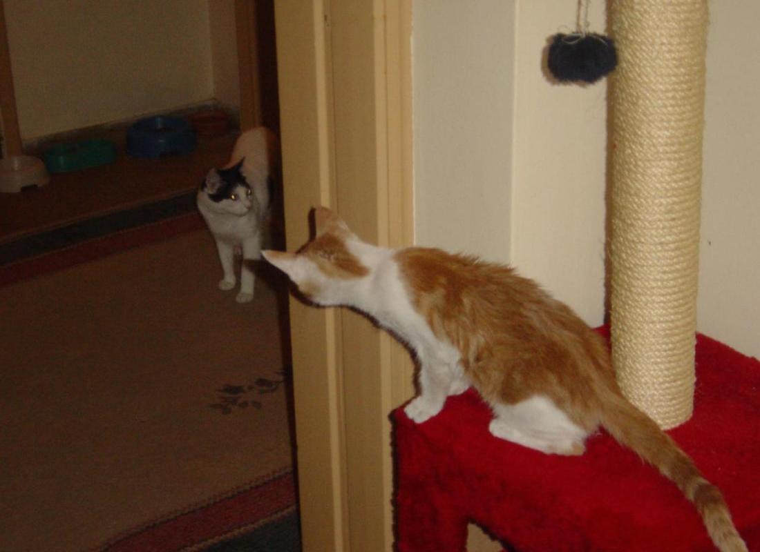 Στο θέμα μας όμως... 'Ετσι λοιπόν η νέα μου "μαμά" με πήρε σήμερα στο νέο μου σπίτι και γνώρισα τον μεγάλο αδελφό μου τον Ασπρούλιακα ( ο οποίος το παίζει γόης και αυτοκράτορας)..