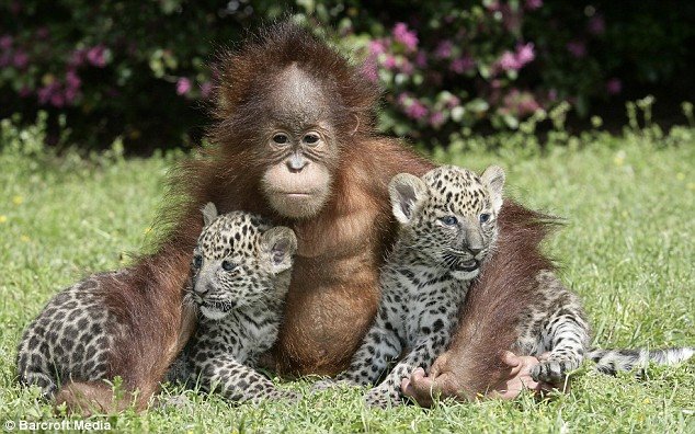 Φιλαράκια πολύ καλά έχουν γίνει τα δυο δίδυμα λεοπαρδαλάκια, που γεννήθηκαν πριν 5 βδομάδες στε Ινστιτούτο της Νότιας Καρολίνας, με έναν Ουρακοτάγκο. Τα δίδυμα μεγάλωσαν με τη βοήθεια του προσωπικού του ινστιτούτου και είναι είδος υπό εξαφάνιση. Τις τελευταίες 10 μέρες απομακρύνθηκαν από τη μητέρα τους . Δε θα πάνε ποτέ στην άγρια φύση, θα παραμείνουν...