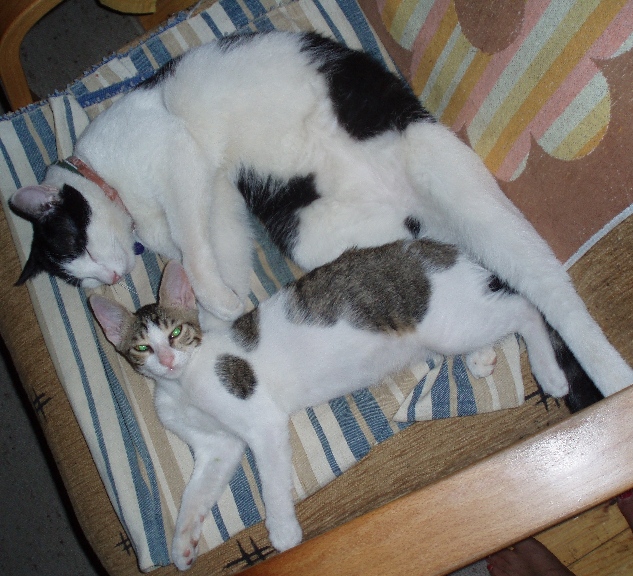 Τα γατιά.. χ@@καν.. με τον νέο φιλοξενούμενο.... τίποτα καμία έννοια. :) Τα πιτσιρίκια μόνο έκαναν επίθεση στο γάλα.