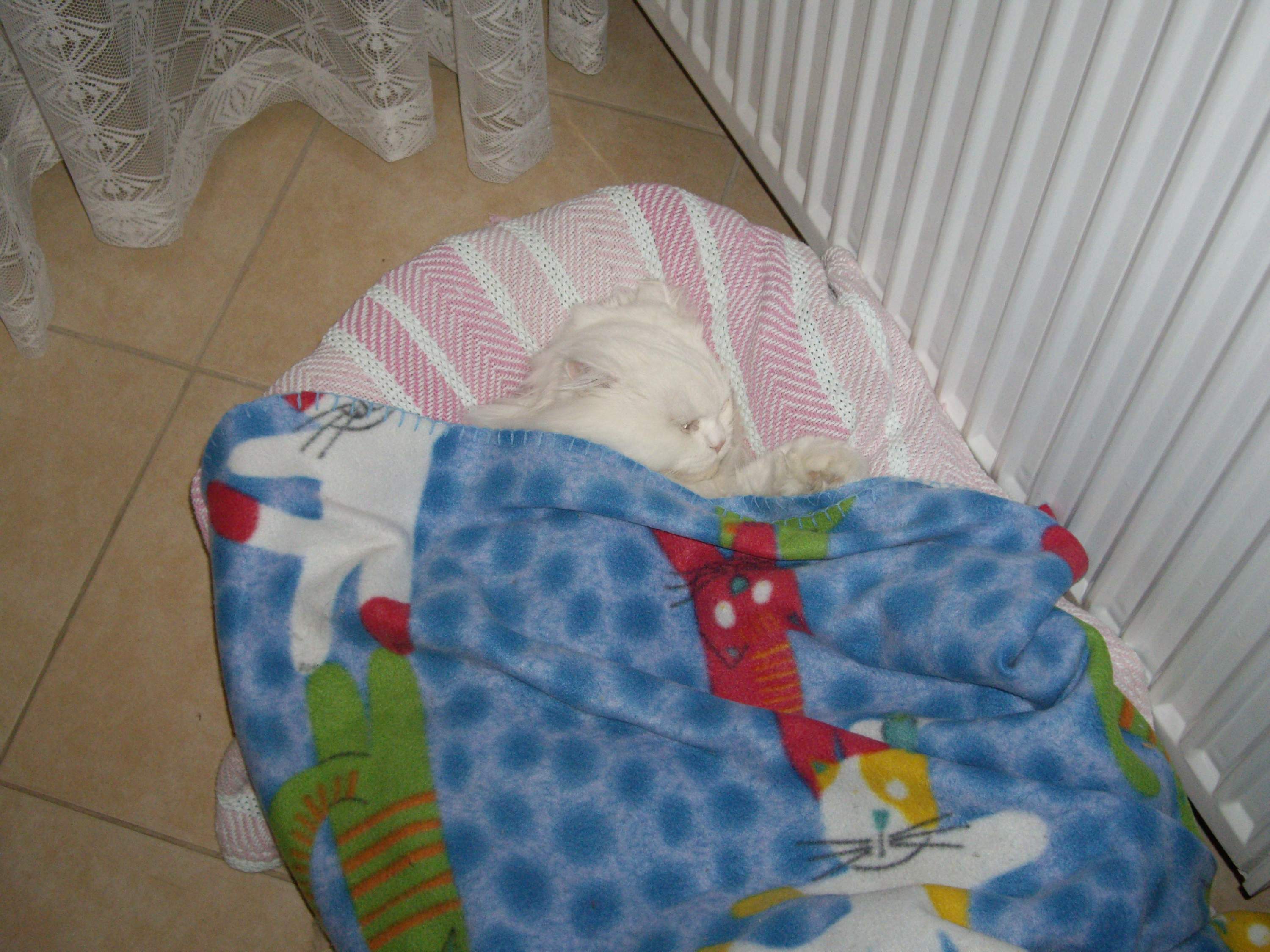 τον εβαλα στο κρεβατακι του και τον αφησα να κοιμηθει οσο θελει..καποια στιγμη το βραδυ ξυπνησε και βγηκε προς το σαλονι...η Μιτση με τον που το ειδε εξαφανιστηκε κατω απο τον καναπε,σου λεει...παλι θα με παρει στο κυνηγι..αλλα τιποτε ,ο Μιου ζαλισμενος ακομα απο την ναρκωση ειχε κουρνιαση πανω στο χαλι και κοιτουσε το κενο..μετα απο λιγο η Μιτση εβγαλε το κεφαλι της να ελεγξει τι γινεται ,γιατι τοση ησυχια???ο Μιου εκει,αλλα ουτε που την εδινε σημασια.Το βραδυ περασε πολυ ησυχα,,το πρωι ξυπνησα και βρηκα τον Μιου διπλα μου στο κρεβατι να κοιμαται.ε,αφου ανεβηκε και στο κρεβατι καλα παει ,σκεφτηκα!σημερα ολη μερα ησυχια επικρατουσε.Ο Μιου εχει ξυπνησει για τα καλα και δεν δειχνει να ποναει καθολου.τελος καλο ολα καλα!Μονο η Μιτση φαινεται να μην εχει καταλαβει ακομα την αλλαγη του και αυτη την ησυχια πιο πολυ την τρομαζει παρα την ηρεμει...απο εδω και περα ομως νομιζω οτι μονο καλα θα πανε τα πραγματα.