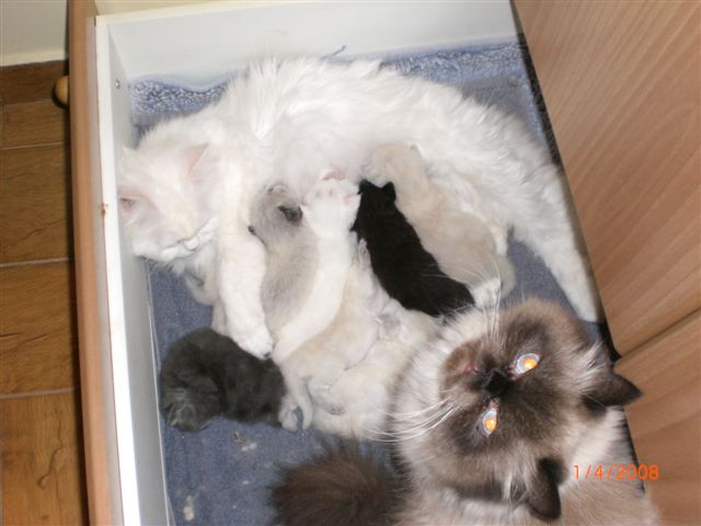 Προχτές που πήγα στο σπίτι ενός φίλου μου που έχει πολλές γάτες, μου είπε ότι μόνο η Τζένη και η Λούνα του τα πάνε καλά ως λεχώνες... τις τράβηξα και φωτό... όλες οι άλλες παλεύουν και τις απομονώνει!