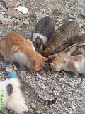 φετος το καλοκαιρι δε βρηκα σκυλια,αλλα απειρα γατια.γατες με γατακια,μωρα ετοιμοθανατα,αρρωστα,ολα σε αθλια κατασταση.ζουσαν μεσα στους σκουπιδοντενεκεδες περιμενοντας να περασει καποιος να πεταξει σκουπιδια για να βρουν τιποτα να φανε.ηταν πολυ αγριες και δε σε πλησιαζαν με τιποτα.οργανωθηκα,πηρα 30 κιλα ξηρη τροφη και αρχισα να πηγαινω καθε μερα να τις ταιζω(μη σας πω τι ακουγα απο κατοικους που περναγαν απο'κει "και τι τις ταιζεις να πολλαπλασιαζονται και να λερωνουν τον τοπο σκιζοντας τις σακουλες με τα σκουπιδια","δεν πειραζει,μολις ερθει ο χειμωνας να δεις που θα πανε κι αυτες",και αλλα τετοια χαριτωμενα.
