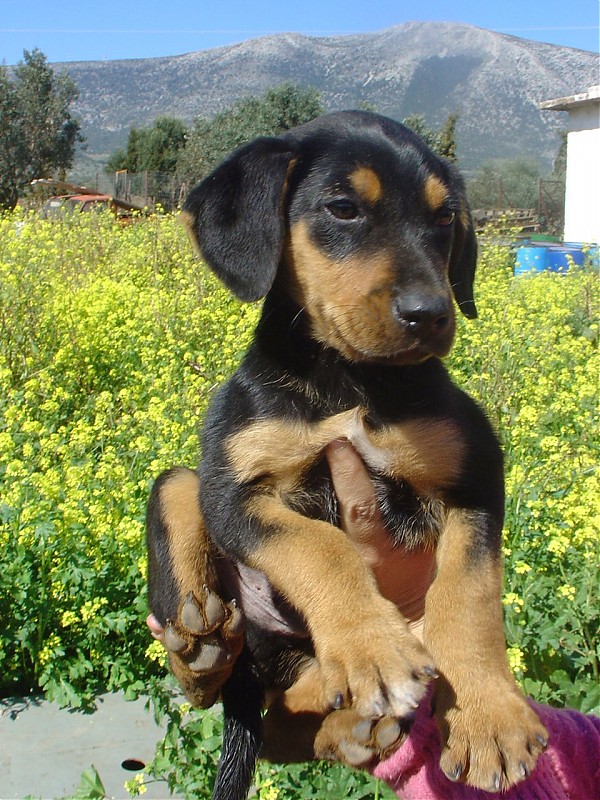 Είναι ημίαιμο ντομπερμανάκι κ' θα γίνει μικρομεσαίος.