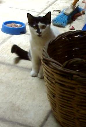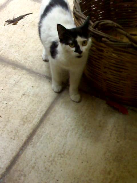 Αυτό το γατάκι έχασε τη μαμά του και έχει μείνει μόνο του στο δρόμο κοντά στο σπίτι μας και κλαίει!Είναι περίπου 4 μηνών. Κινδυνεύει στη γειτονιά αυτή γιατί απειλούν για φόλες!!! SOS :(