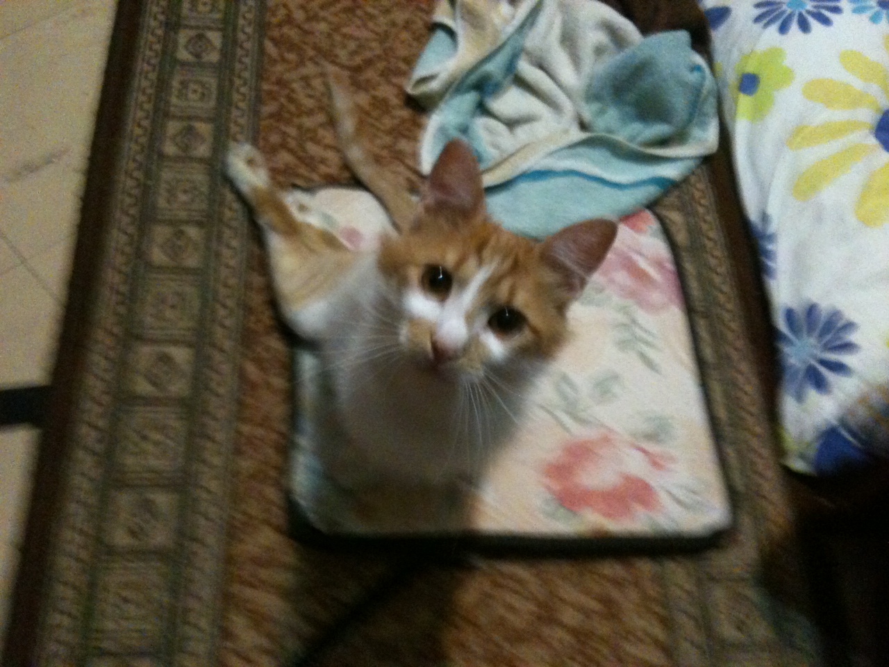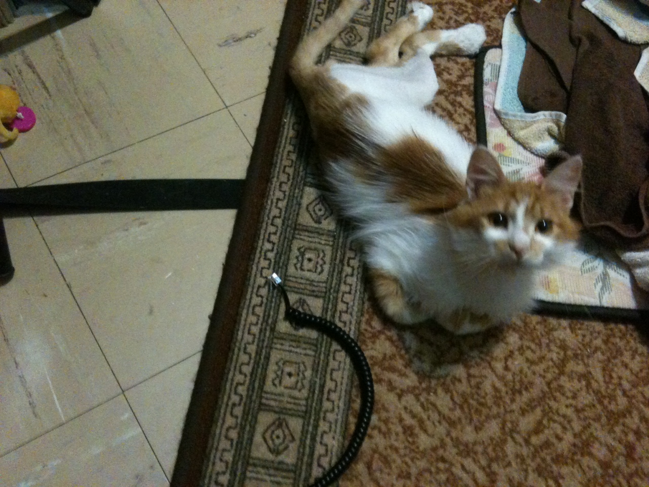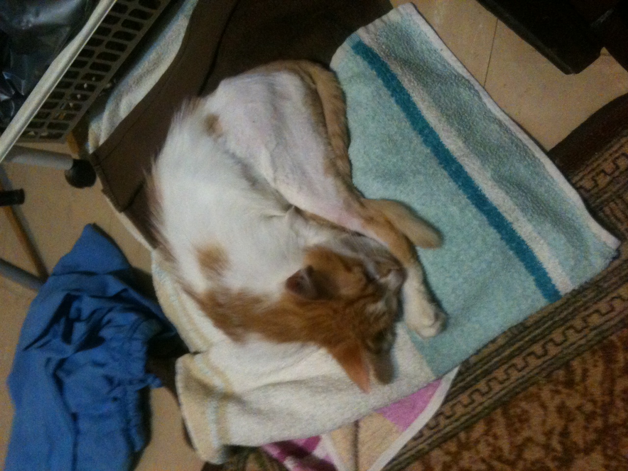 Επισυνάπτω μια ακόμη φωτογραφία, είναι 4 τα χαράματα αυτή την στιγμή και μετά από πολύωρο παιχνίδι αλωνίσματος στο σπίτι (άνω κάτω τα χαλιά, παιχνίδια κτλ) είναι κουρασμένο. Σίγουρα θα βλέπει όνειρο ότι θα γίνει μεγάλος γατούλης.