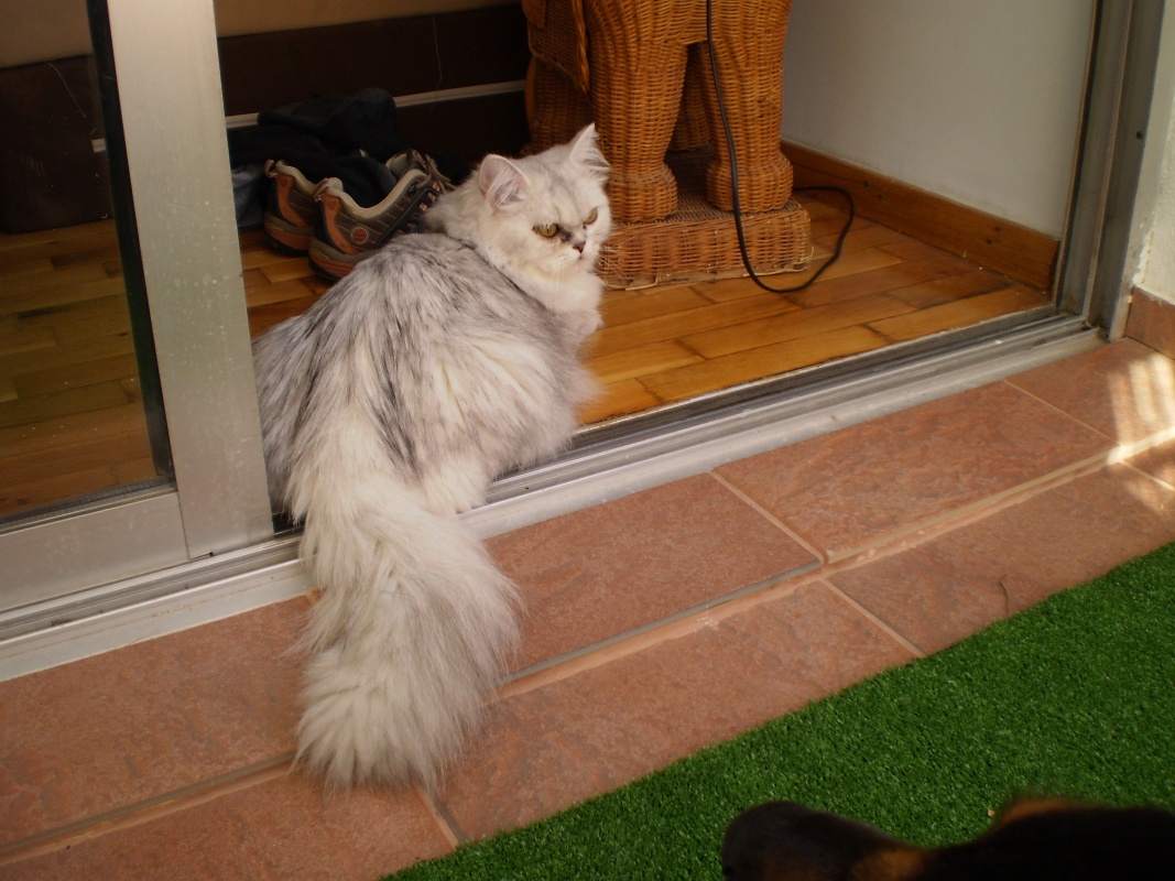 Είναι μία υπέροχη περσική με χρωματισμό chinchila και τα έχει τα χρονάκια της γεννημένη στις 14-3-2006. Θα μου πείτε, και πώς βρέθηκε στην οικογένεια μας? ΄ΟΠως σας είπα όταν μετακόμισα στην Αθήνα έχασα το γατούλι μου. Στα Χανιά που έμενα είχα κήπο και ο καλός μου μπορούσε να μπαινοβγαίνει όποτε ήθελε. εδώ τώρα μένω σε διαμέρισμα και είχα για πολυ καιρό δισταγμό αν θα έπρεπε να πάρω νέο γατούλι. Σκέφτηκα λοιπόν να δοκιμάσω περσίας.