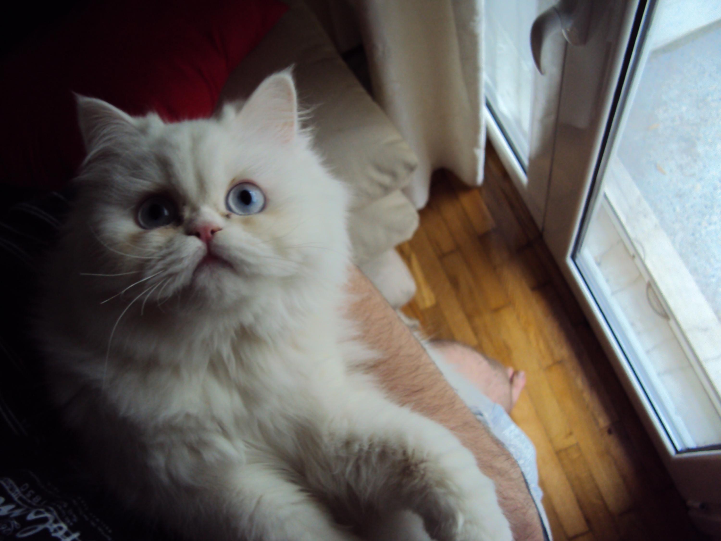 Περσική λευκή ή γαλλική Περσίας. Είναι κατάλευκη και συνεπώς χρωματίζεται και από το φωτισμό του χώρου. Ο γιατρός της λέει οτι δεν έχει ίχνος μελανίνης πάνω της... Ευχαριστώ για τα κοπλιμέντα φίλοι catlovers!