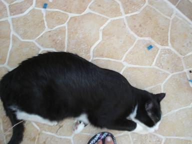 να που κοιμάται το πριν πριν μου όταν εγώ φορουμιάζομαι.... Πάνω στο ρούτερ (δεν φαίνεται). Αν παρατηρήσει κανείς όμως την στάση στην οποία είναι ξαπλωμένος θα δεί ότι το πίσω μέρος είναι σε άλλο επίπεδο από τα μπροστινά πόδια ή το κεφάλι