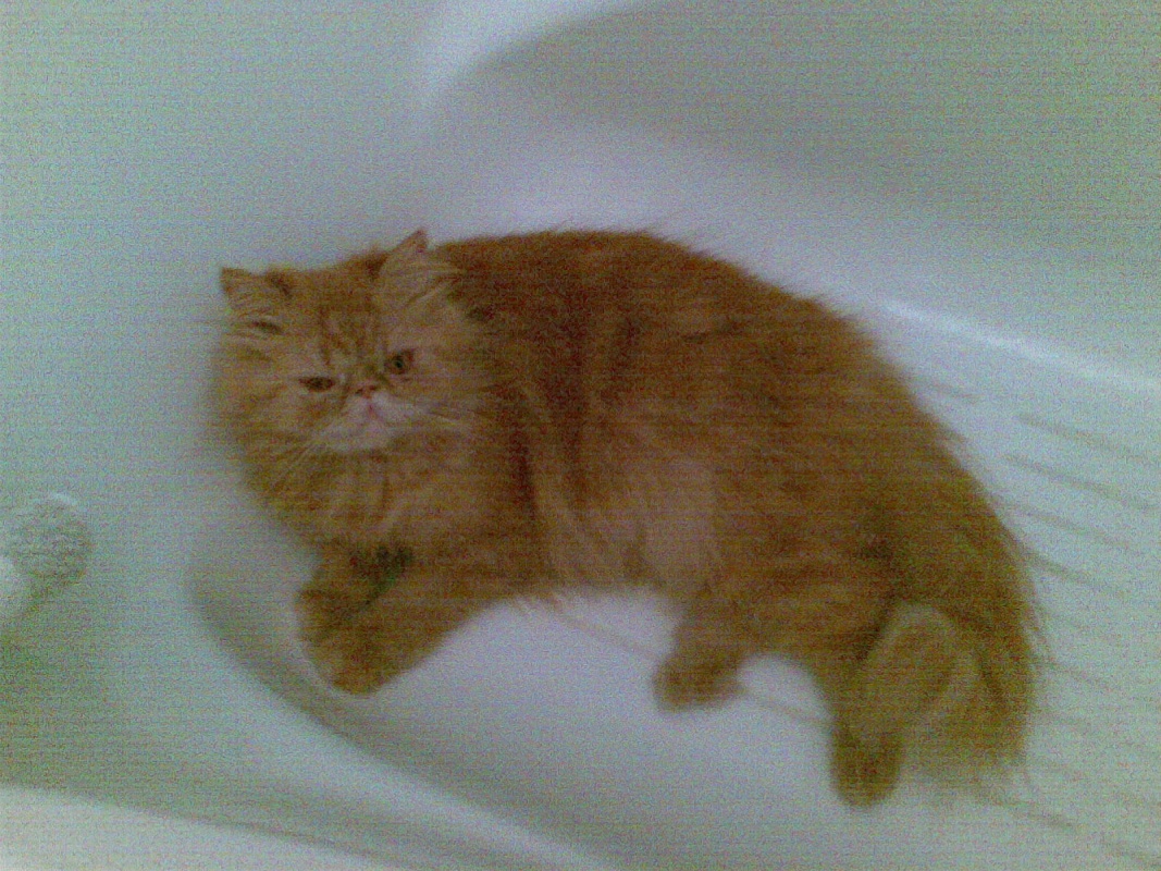 ειχα πεσει για υπνο ενα μεσημερι και ο γατος μου ο Τομ κοιμοταν κλασικα παρεα μου, συνηθως καπου στα ποδια μου. Σε καποια φαση ξυπναω γιατι για καποιο λογο με ποναγε ο λαιμος μου, και ανακαλυπτω πως ετσι οπως κοιμομουν ανασκελα και ειχα γυρισει το κεφαλι στο πλαι, με καποιο τροπο ο Τομ ειχε κουλουριαστει ολοκληρος πανω στο κεφαλι μου. Απορω πως βολευτηκε εκει, και κυριως ΓΙΑΤΙ ειδικα εκει
