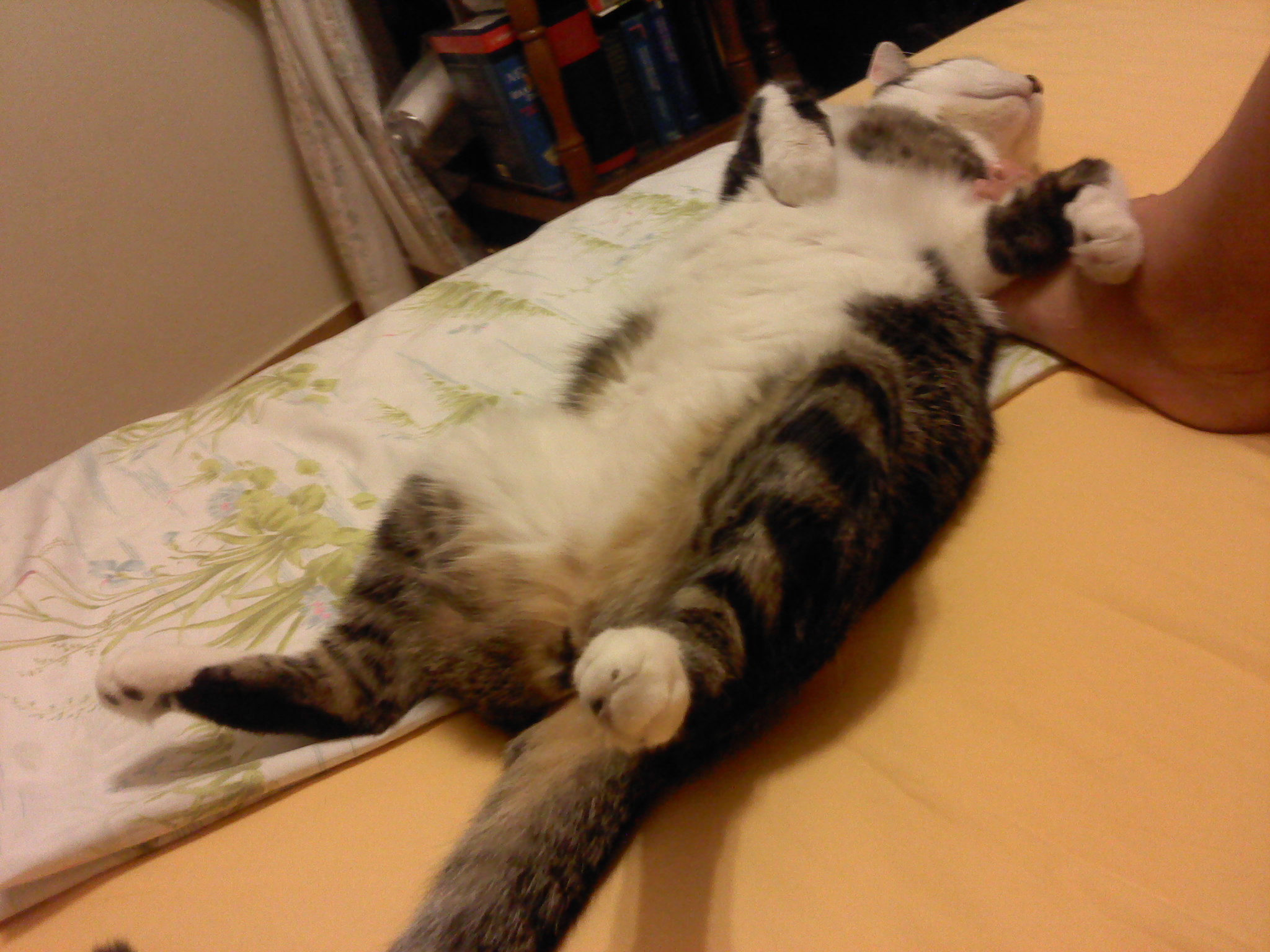 Ζηλεύω! :( Εγώ δυστυχώς δεν μπορώ να κοιμηθώ με την γάτα μου γιατί το βράδυ την πιάνει η τρέλα και θέλει να παίξει. Έρχεται πάνω στο κεφάλι μου, μου τραβάει τα μαλλιά, γρατζουνάει και δαγκώνει. Καμιά φορά αν νυστάζει κοιμάται καμια ώρα αλλά μετά ξυπνάει ενώ εγώ είμαι έτοιμη να κοιμηθώ και αρχίζει τα δικά της! Οπότε την αφήνω στο σαλόνι και χοροηδάει και παίζει μόνη της. Αναρωτιέμαι αν θα προσαρμοστεί ποτέ στον βραδινό μου ύπνο. Πάντως το πρωί που ξυπνάω την βρίσκω στον καναπέ ή στην πολυθρόνα.