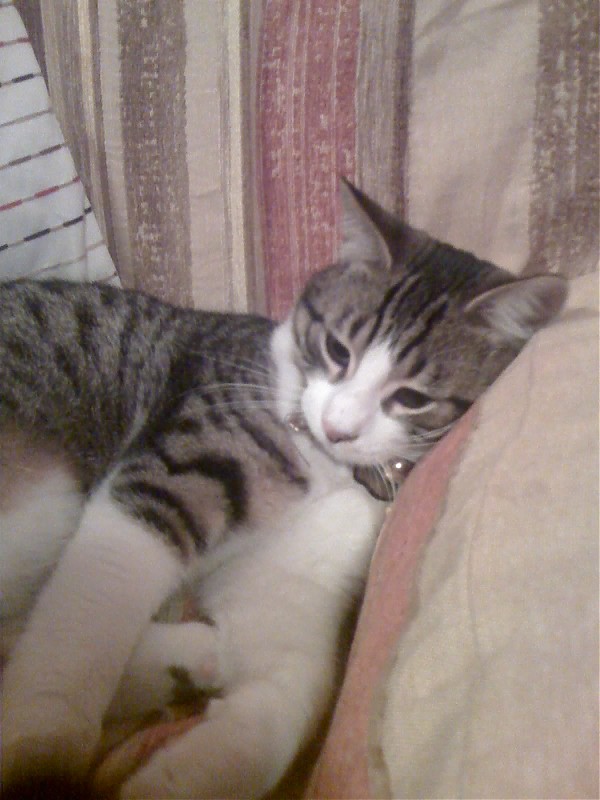 Όταν γυρνάω το βράδυ έρχεται για λίγο και κοιμάται πάνω μου και μετά ξαπλώνει δίπλα μου ε και άμα κάνει και κρύο μπαίνει μέσα απο την κουβέρτα...