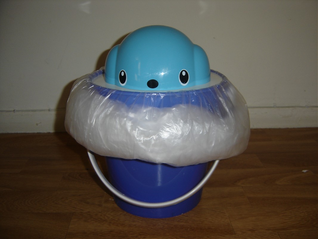 Ετσι οταν χρειαστει να την αδειασετε δεν θα παρει πανω απο ενα λεπτο. απλα πιανεις τις γωνιες τις σακουλας και την πετας. Εγω προσωπικα την σακουλα με τα... κακακια την πεταω μεσα σε μια αλλη σακουλα και μετα στον καδο.