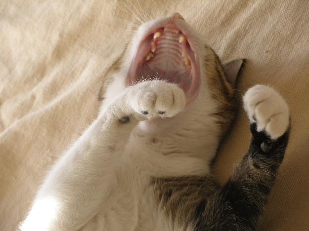 Κάποια στιγμή παρατηρήσαμε ότι έζεχνε το στόμα του και είχε και λίγο κόκκινα δοντάκια και όταν τον πήγαμε στον κτηνίατρο μας είπε είχε περιοδοντίτιδα και είχαν ήδη χαλάσει μερικά δοντάκια του. Τον πήγαμε λοιπόν άλλη μέρα και του έκανε καθαρισμό με νάρκωση και του έβγαλε 3(!) δοντάκια -ευτυχώς όχι πολύ χρήσιμα.
