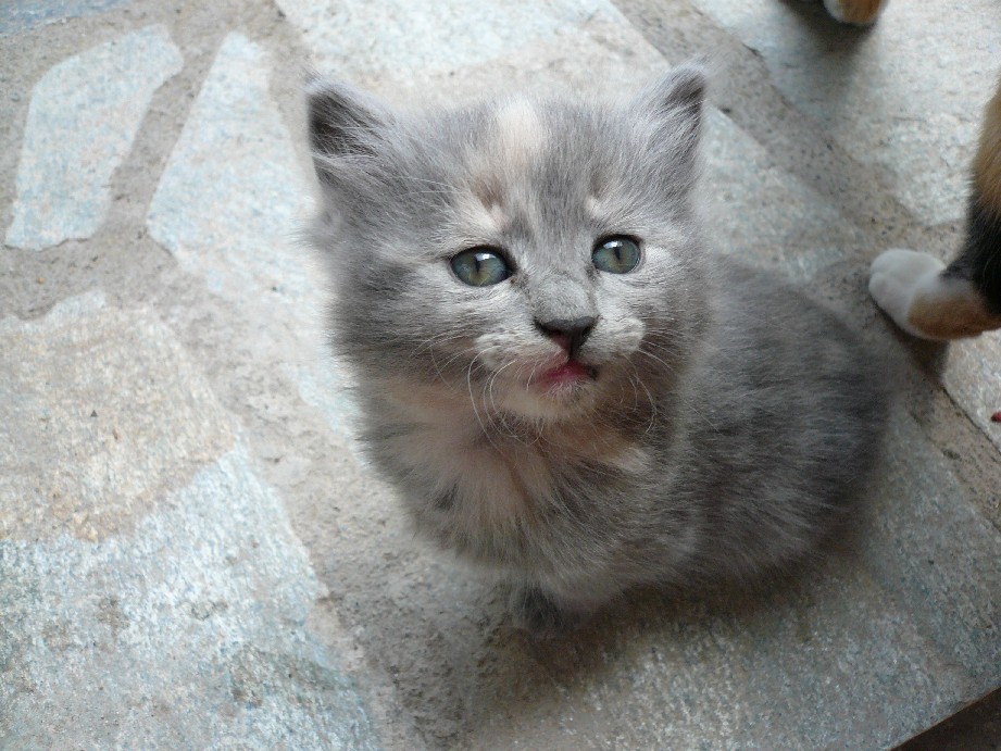 Όχι, είναι το γκρί με τις ξανθο-άσπρες τουφίτσες.Το φουντωτούλι!Δες το...!!:)