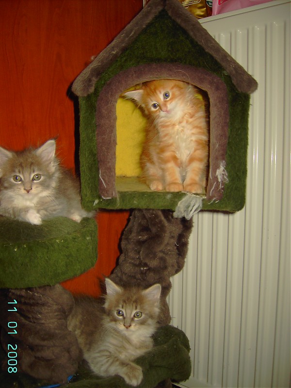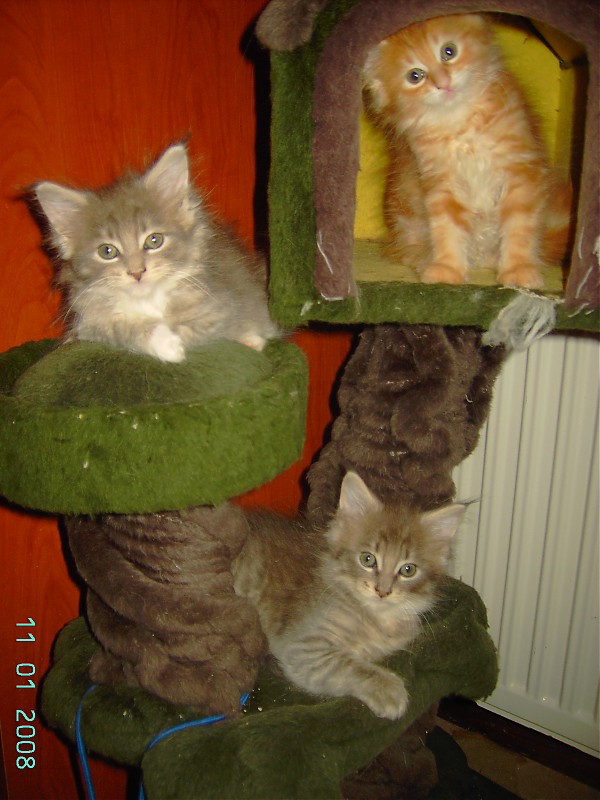 Τα υπέροχα μάλιστα μέιν κουν της, έχουν μείνει στην καρδιά μου!!! Τι να προτοδιαλέξεις: Τα αρσενικά θεϊκά της λιοντάρια? Τον κατακόκκινο υπέροχο Ντράκον? Το ποντικάκι της(είναι το όνομα μιας γατούλας της) που της μιλάει κι αυτή απαντά με τρεμουλιαστό νιαουρητο? Ή την υπέροχη Κρέμα της, ή την φανταστική Έϊντζελ??? Η.... τα απίστευτα 3 μωρά της τα οποία καταευχαριστήθηκα σε χάδια. Τα δυο εξ αυτών θα τα παραλάβουν σε λίγες μέρες ο Παύλος κ η Στέλλα κ θα μας χαρίζουν όμορφες φωτογραφίες από τη ζωή τους!!!