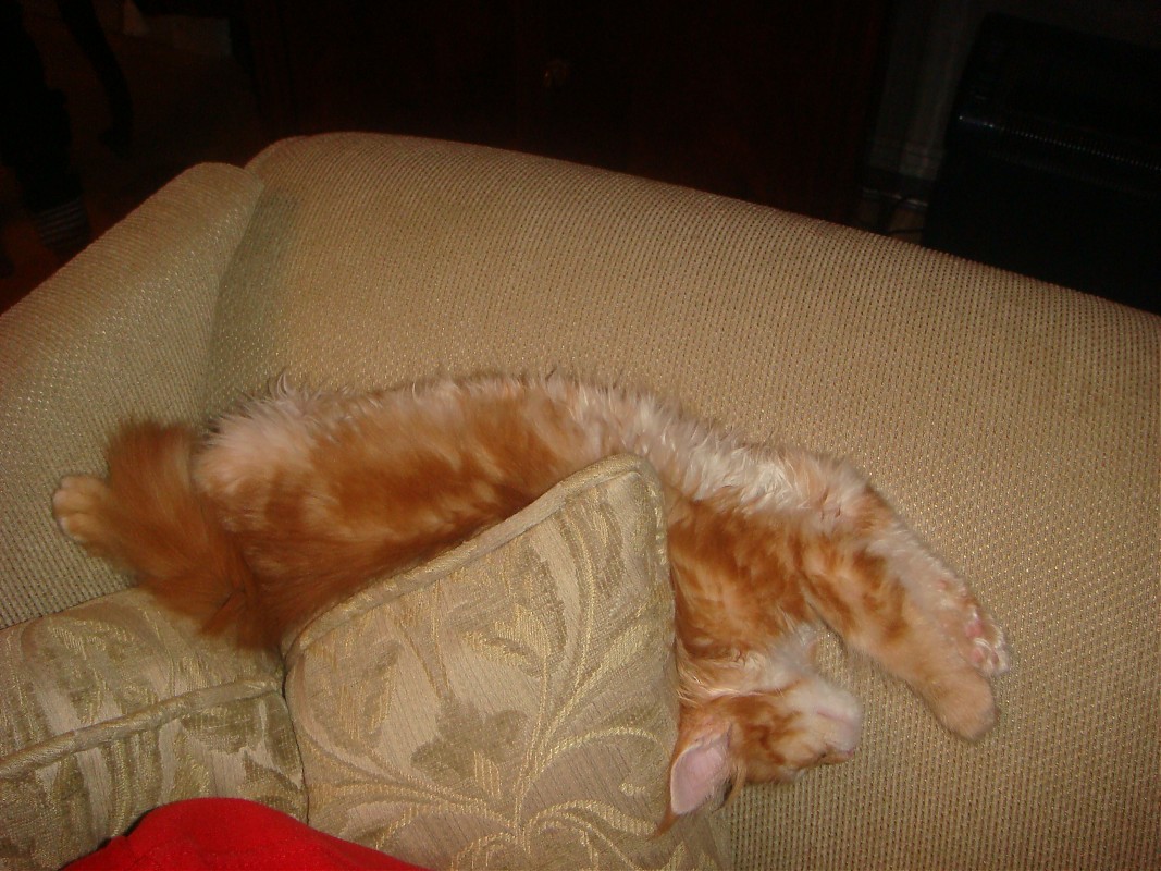 Εχτες, ο δικος μου κοιμοταν στα ποδια μου, την ωρα που ημουν στον υπολογιστη και το κεφαλι του κρεμοταν στο κενο. Απιστευτος.