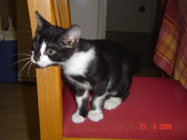Και ο Μολυβίξ είναι ερωτευμένος με την μπανιέρα μας και με τα διάφορα μπουκαλάκια που βρίσκονται εκεί... Δεν με πειράζει ιδιαίτερα και το μόνο που προσέχω είναι να μην αφήνω τα μπουκαλάκια ανοιχτά γιατί το έχω συνήθεια. Α να,ι και μέτα κάνω υπομονή και καθαρίζω τα πατουσάκια. Εγώ τον Μολυβίξ τον μαλώνω πάρα πολύ και ύστερα στεναχωριέμαι. Δεν μπορώ όμως να με καβαλήσει. Ακόμα και αν εγώ έκανα υπομονή δεν θα έκανε ο Δημήτρης. Όπως και με τα παιδιά έτσι και με τα γατιά πρέπει να υπάρχει κοινή γραμμή πλεύσης. Έτσι δεν είναι? Ο Μολυβίξ έχει μάθει να αποτρέπεται απο τις σκανταλιές με ένα μακρόσυρτο και αυστηρό εεε. Αυτό πιάνει όταν είμαστε μπροστά γιατί κατα τ'αλλά ότι του αρέσει θα το κάνει. Στην αρχή πείραζε κάτι ταλαίπωρους φίκους που έχουμε, τις έφαγε και σταμάτησε διαπαντώς. Του αφήνουμε μεγάλη ελευθερία κινήσεων αλλά αυτό που μας θυμώνει πολύ είναι να ανεβαίνει στο τραπέζι.Έχει πέσει το απίστευτο μάλωμα και ξυλιές αλλά έχει αποτέλεσμα μόνο μπροστά μας. Δηλάδή όταν είμαστε εμείς εκεί και αυτός κοιτάξει με λαγνεία το τραπέζι κανουμε ένα εεε και ο Μολυβίξ είναι Παναγίτσα και περιορίζεται στις καρέκλες που είναι και το αγαπημένο του σημείο στο σπίτι.. (δείτε φωτό) Πολλές φορές όμως τον τσακώνω εν τη απουσία μου να κάνει βόλτα στα σουπλά μας και παρόλο που τον μαλώνω το ξανακάνει. Αφηνα για δοκιμή ένα σελιδοδείκτη σκυλάκι που έχω, τον οποίο ο Μολυβίξ τον λατρεύει. Ε λοιπόν, όταν γύριζα πάντα ο σελιδοδείκτης ήταν στο δωμάτιο του.. Για να μην μιλήσω για το δάγκωμα που δεν το κόβει με τίποτα. Μια φορά που έκοψε κομμάτι απο τον Μήτσο, εκείνος του φώναξε τόσο πολύ που το γατάκι χέστηκε κυριολεκτικά. Παρόλα αυτά μετά απο λίγο πάλι δοκίμαζε τα δοντάκια του πάνω μας. Με έχει προβληματισει αυτό.. Είναι μικρός ακόμα, ή είναι αντάρτης και να το πάρουμε απόφαση?