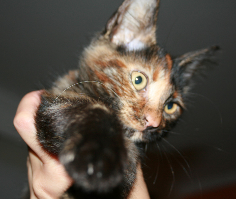 , αλλα η αληθεια ειναι οτι ειμαι η μονη...οσοι φιλοι και γειτονες (κι ο κτηνιατρος) το βλεπουν μου λενε: ιιιιιιιιιιιιιι γιατι ειναι ετσι αυτο, σα λεπρο ειναι, ιιιιιιιιιιιι τι ασχημο!!! δε θα το χαιδεψω ποτε.... αλλα εχει ματαρες!! και τρελο γελιο γιατι παιζει σα παλαβο, και τρωει σα λυκος!