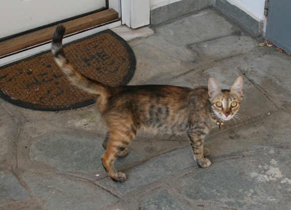 Τριγυρναει συνεχεια εδω γιατι ειναι πολυ πεινασμενη.... Τελευταια αρχισε να μπαινει και στο σπιτι της γειτονισας και μαλιστα πανω στον παγκο της κουζινας (δεν χαρηκε καθολου)... οποτε πηραμε τηλεφωνο τους ιδιοκτητες της (εχει κι αυτη κουδουνακι και nametag), οι οποιοι μας ειπανε οτι λειπουν και δεν μπορουν να κανουν τιποτα και οτι εχει μωρα και μαλλον ψαχνει φαγητο για να τους παει... σαν τα πουλια ενα πραγμα... Δυστυχως δεν ενδιαφερονται και δεν ειναι και καθολου συννενοησιμοι