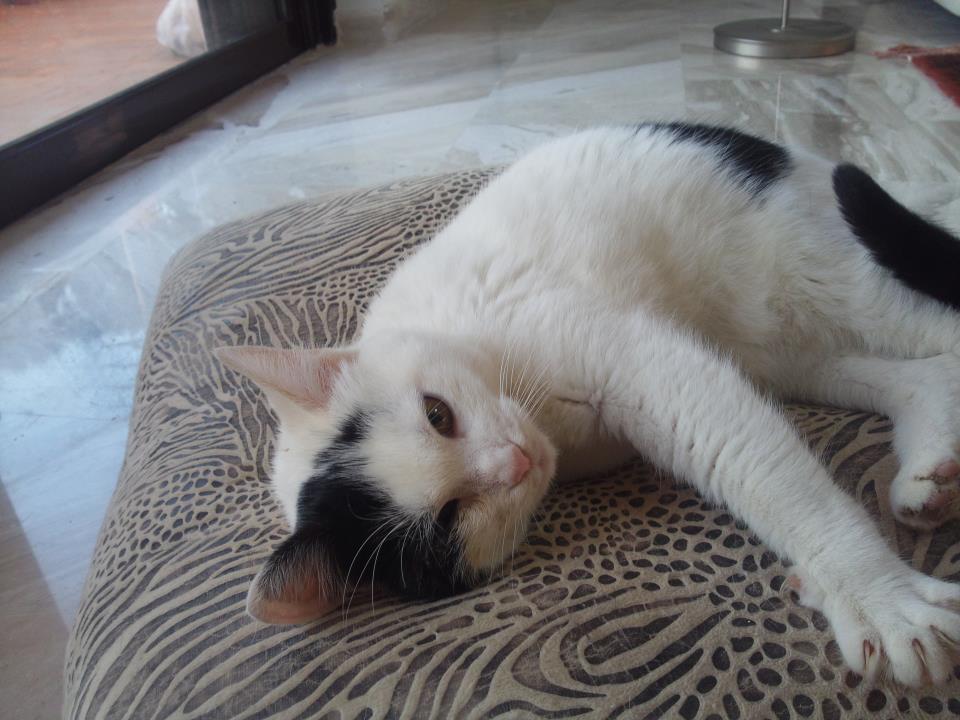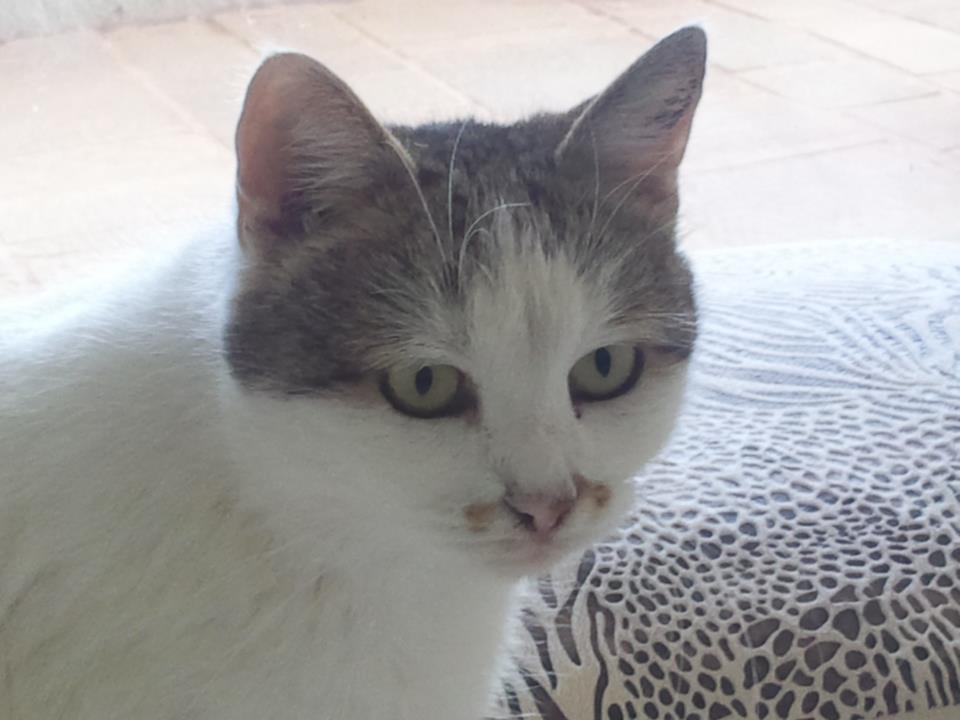 Είμαι η Μπέλλα (η ασπρούλα) 1,5 ετών! Ήμουν στο δρόμο μαζί με τα παιδάκια μου. Δυστυχώς ένας κακός γείτονας μου τα σκότωσε κ γλύτωσε μόνο η Ζουζουνέλ χάρη σε μια καλή κυρία. Τώρα φιλοξενούμε προσωρινά σε ένα δωμάτιο.