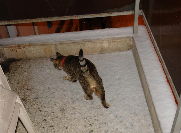 Τι απίστευτη ήταν αυτή η μέρα Εκτός του ότι επιτέλους χιόνισε στο κέντρο της Αθήνας(ΕΠΙΤΕΛΟΥΣ), ακυρώθηκε και το μάθημα που έδινα αύριο(που δεν είχα διαβάσει...) Για να ζηλεύψετε, ορίστε η θέα του σπιτιού μου σήμερα: (Η εικόνα βρίσκεται στο τέλος του κειμένου) (Η εικόνα βρίσκεται στο τέλος του κειμένου) (Η εικόνα βρίσκεται στο τέλος του κειμένου) του ακάλυπτου: (Η εικόνα βρίσκεται στο τέλος του κειμένου) και φυσικά η Τιτίκα έκανε τη βολτούλα της: (Η εικόνα βρίσκεται στο τέλος του κειμένου) Σημείωση: Το μήνυμα αυτό γράφτηκε 17 χρόνια πριν. Ο συντάκτης του πιθανόν να έχει αλλάξει απόψεις έκτοτε.