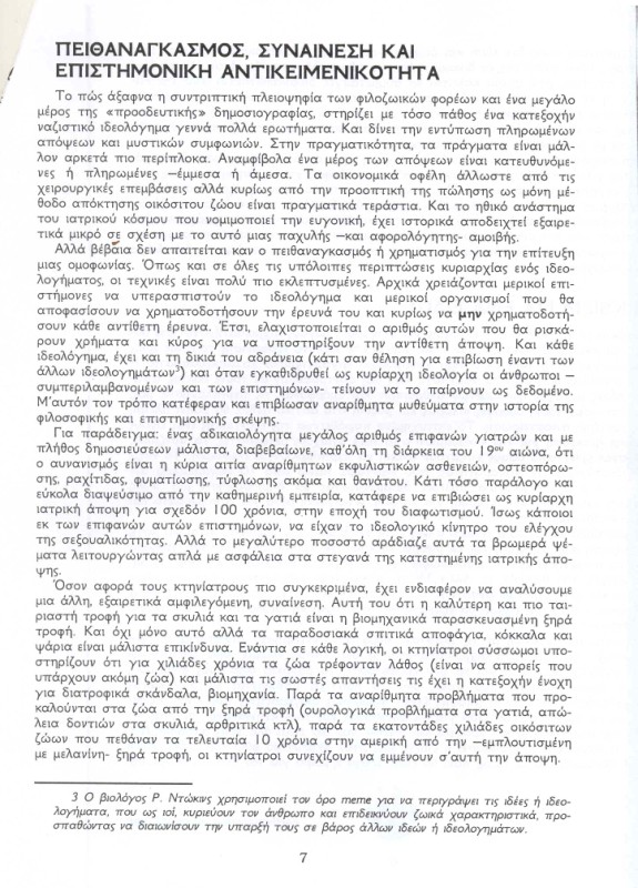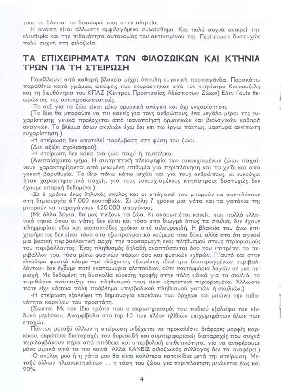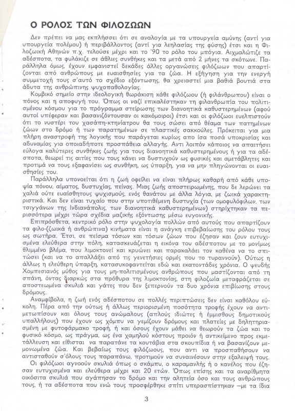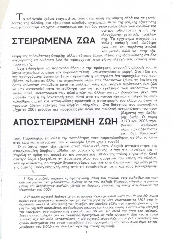 αυτο που με στεναχωρησε περισσοτερο στην αναρχικη μπροσουρα ειναι οτι απειλουν και τους κτηνιατρους που κανουν στειρωσεις.δυστυχως οι αναρχικοι ειναι νεα παιδια γυρω στα 20 με ιδεες παρωχημενες.στο ενδιαμεσο η μεγαλη μεριδα των νεων ειναι αδιαφορη για τη φιλοζωια.Μα αφού το λένε κάπου στο φυλλάδιο, ότι ο πληθυσμός προσαρμόζεται στις δυνατότητες που προσφέρει το περιβάλλον.