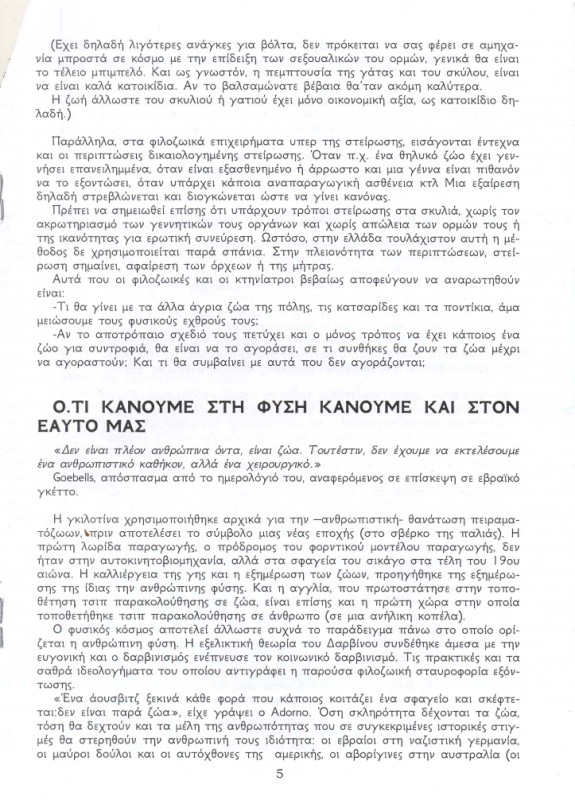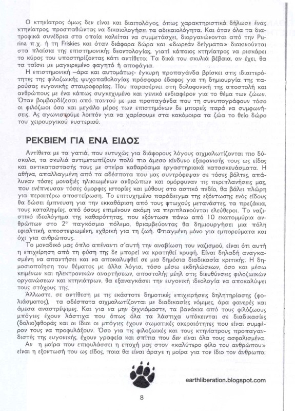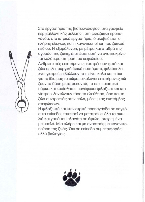 αυτο που με στεναχωρησε περισσοτερο στην αναρχικη μπροσουρα ειναι οτι απειλουν και τους κτηνιατρους που κανουν στειρωσεις.δυστυχως οι αναρχικοι ειναι νεα παιδια γυρω στα 20 με ιδεες παρωχημενες.στο ενδιαμεσο η μεγαλη μεριδα των νεων ειναι αδιαφορη για τη φιλοζωια.