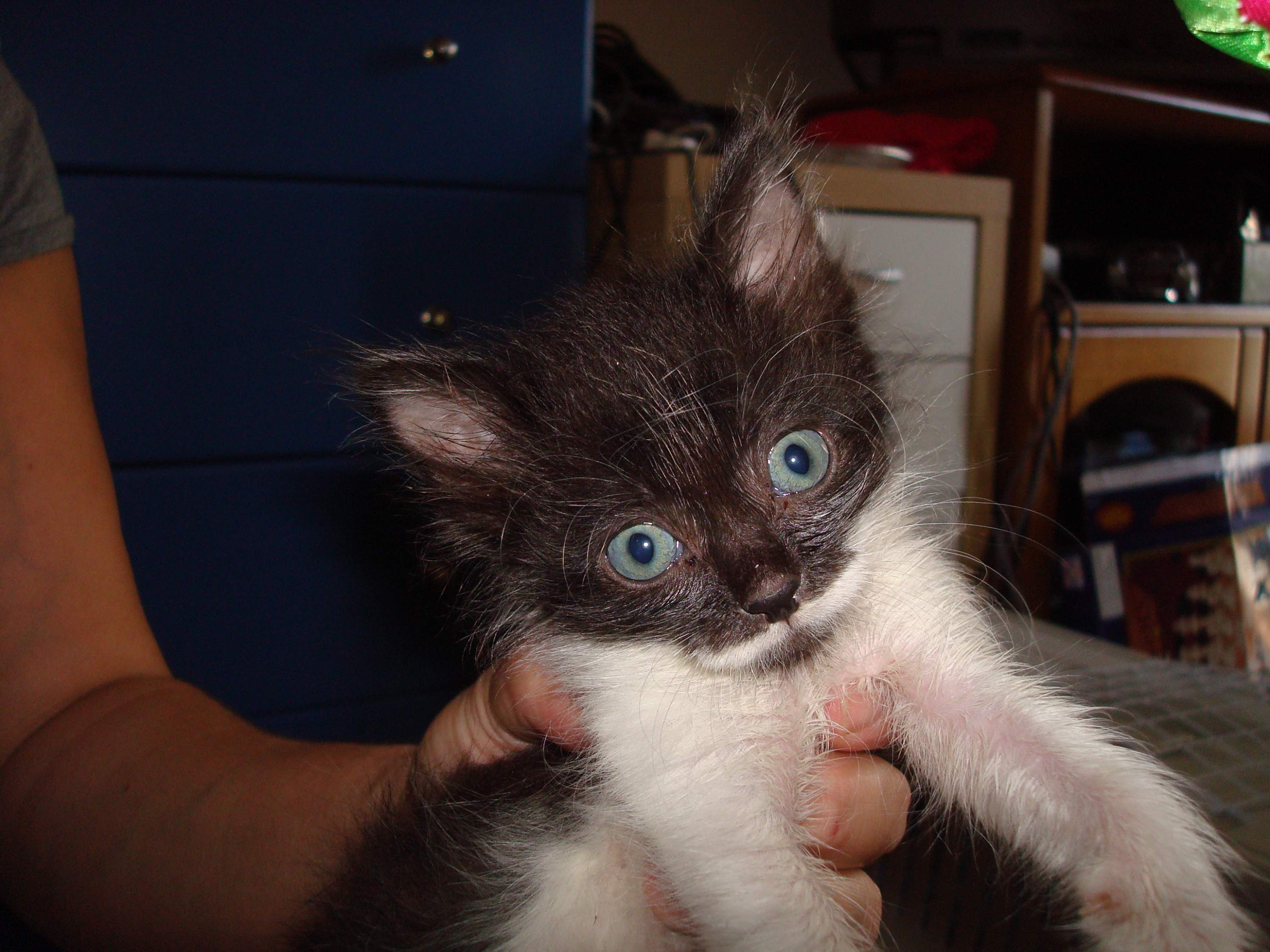 Γατάκι θυληκό ασπρόμαυρο,μακρύτριχο 2 μηνών με γαλανά μάτια βρέθηκε πεταμένο στα σκουπίδια και σώθηκε μόνο αυτό απο τα υπόλοιπα αδερφάκια της.Χαρίζεται λόγω σοβαρών προβλημάτων υγείας.είναι αποπαρασιτομένο και έχει μάθει να χρησιμοποεί την άμμο της.θα δωθεί εμβολιασμένο.Καλαμαριά Θεσσαλονίκης.