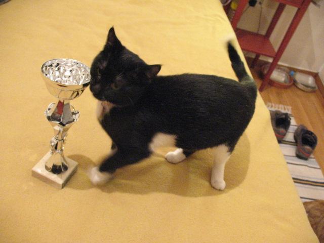 Είναι 3,5 μηνών και θα δοθεί με βιβλιάριο υγείας, τα διπλώματα, τις κριτικές, τους τίτλους και το κύπελλο της, με μικροτσίπ και φόρμα υιοθεσίας από το σύλλογο «φίλοι των ζώων Χαλανδρίου»…Κι αν δεν την προλάβετε….μην ανησυχείτε….πάντα θα υπάρχουν μουτζουρικα γατάκια που θα τα μεταμορφώνουμε σε νικητές της ίδιας της ζωής!!!!