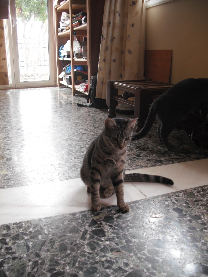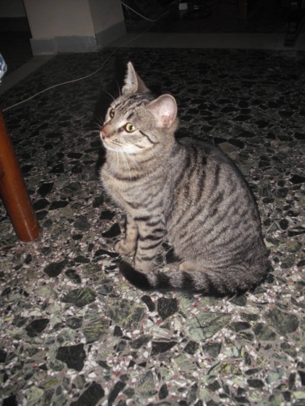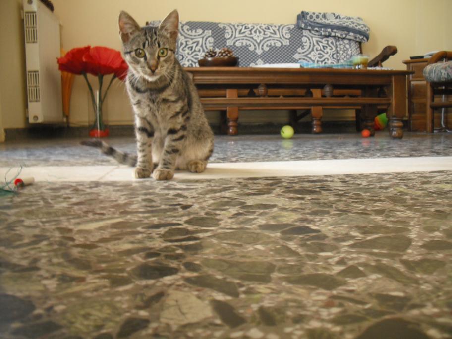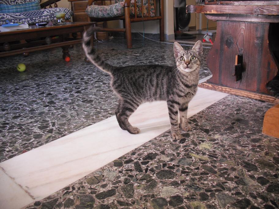 Χαριτωμενος πολυ,χουρχουριζει ολη την ωρα,τριβεται στα ποδια μας και κοντευει να μας ριξει κατω