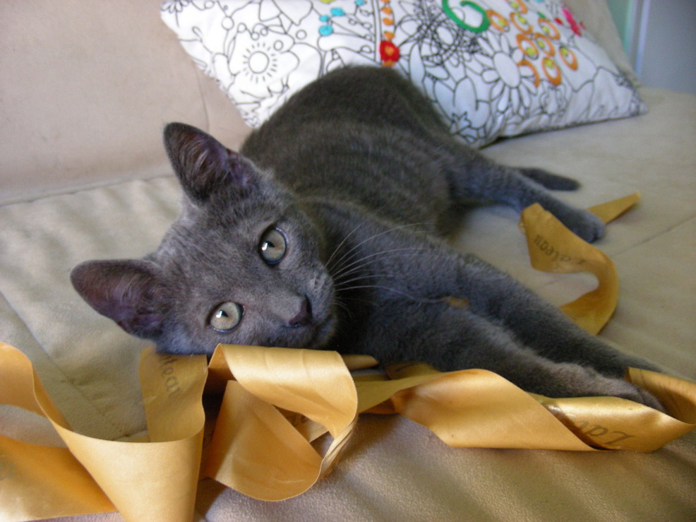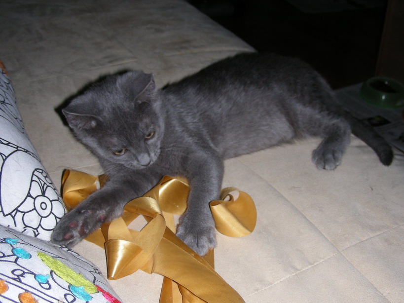 Το φωτορεπορτάζ αναβάλλεται για αύριο, γιατί ο Μένιος μόλις τώρα παρελήφθη και είναι πια σκοτεινά για φωτογράφιση. Σας έχω όμως μια πόζα της παρηγοριάς, τραβηγμένη πριν από δυό λεπτά: ο Μένιος σε φάση λυσσαγμού, επιτίθεται αδυσώπητα σε μια κορδέλα που είχε το θράσος να του κουνηθεί: