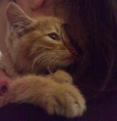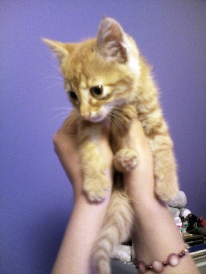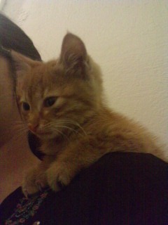 Είναι το δεύτερο γατάκι (το πρώτο ήταν ένα πανέφορφο τυφλάκι) που βρήκα και δίνω για υιοθεσία και ανησυχώ πάρα πολύ, αλλά δεν γίνεται να κρατήσω και αυτό. Οι άνθρωποι που ενδιαφέρονται πάντως μου φαίνονται υπεύθυνοι και έδειξαν ότι τα αγαπάνε πάρα πολύ. Εύχομαι το καλύτερο.
