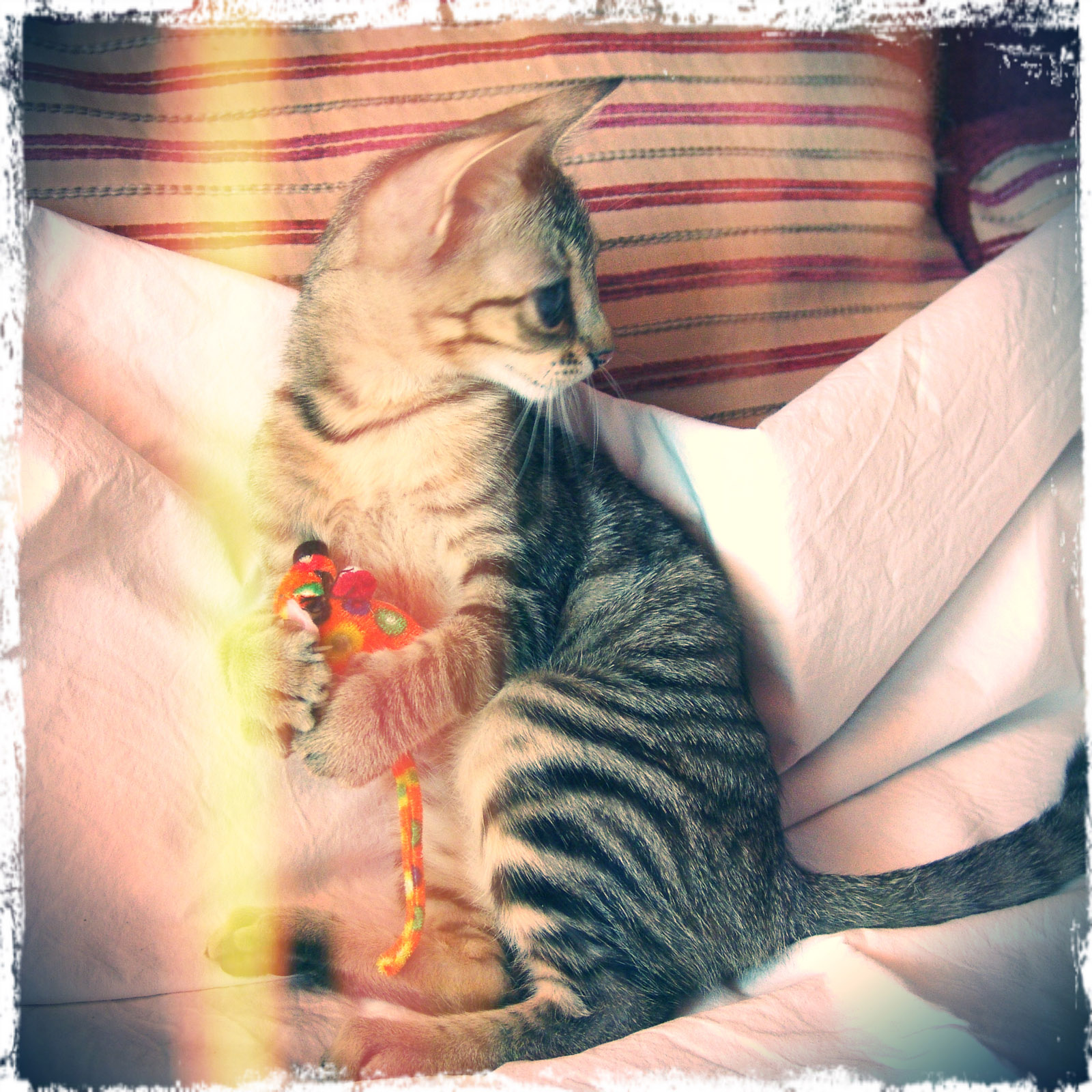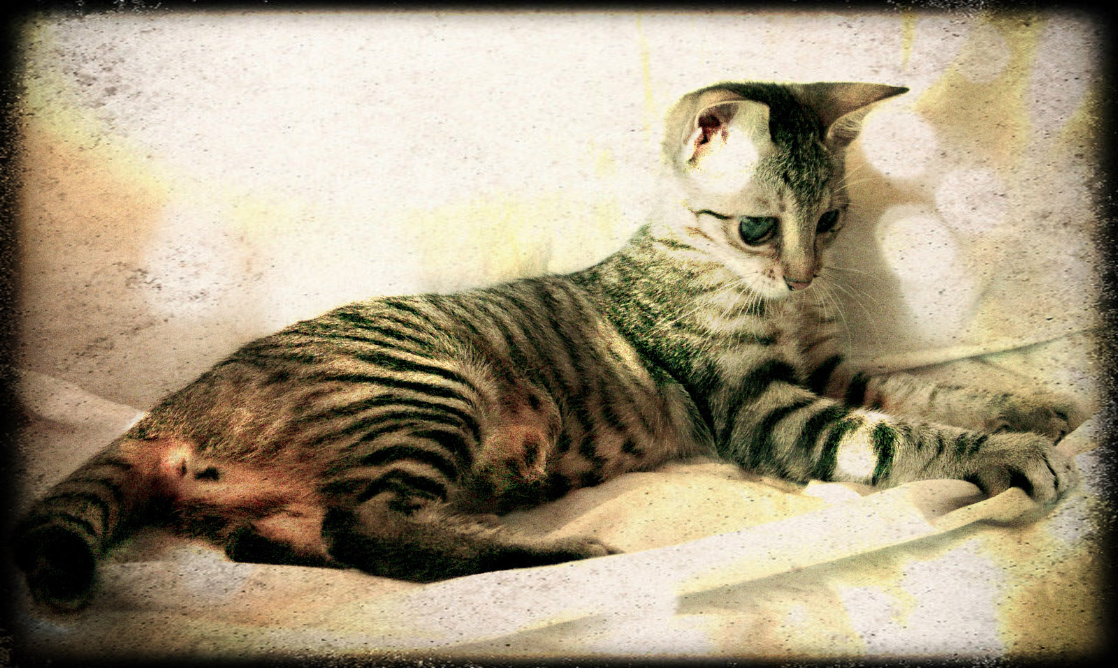 Όπως όλα τα γατάκια θέλει και αυτό ναι παίζει... Έχει προσαρμοστεί στον χώρο του, ετσι θα γίνει και στο μονιμό σπιτικό του και δε θα μπορεί να καταλάβει κανεις πως διαφέρει... Υπάρχει περίπτωση να βελτιωθεί η ορασή του όμως όχι πολύ, τώρα βλέπει σκιές και φώτα... Όμως με τοσες γατίσιες αισθήσεις... η όραση περισευει!