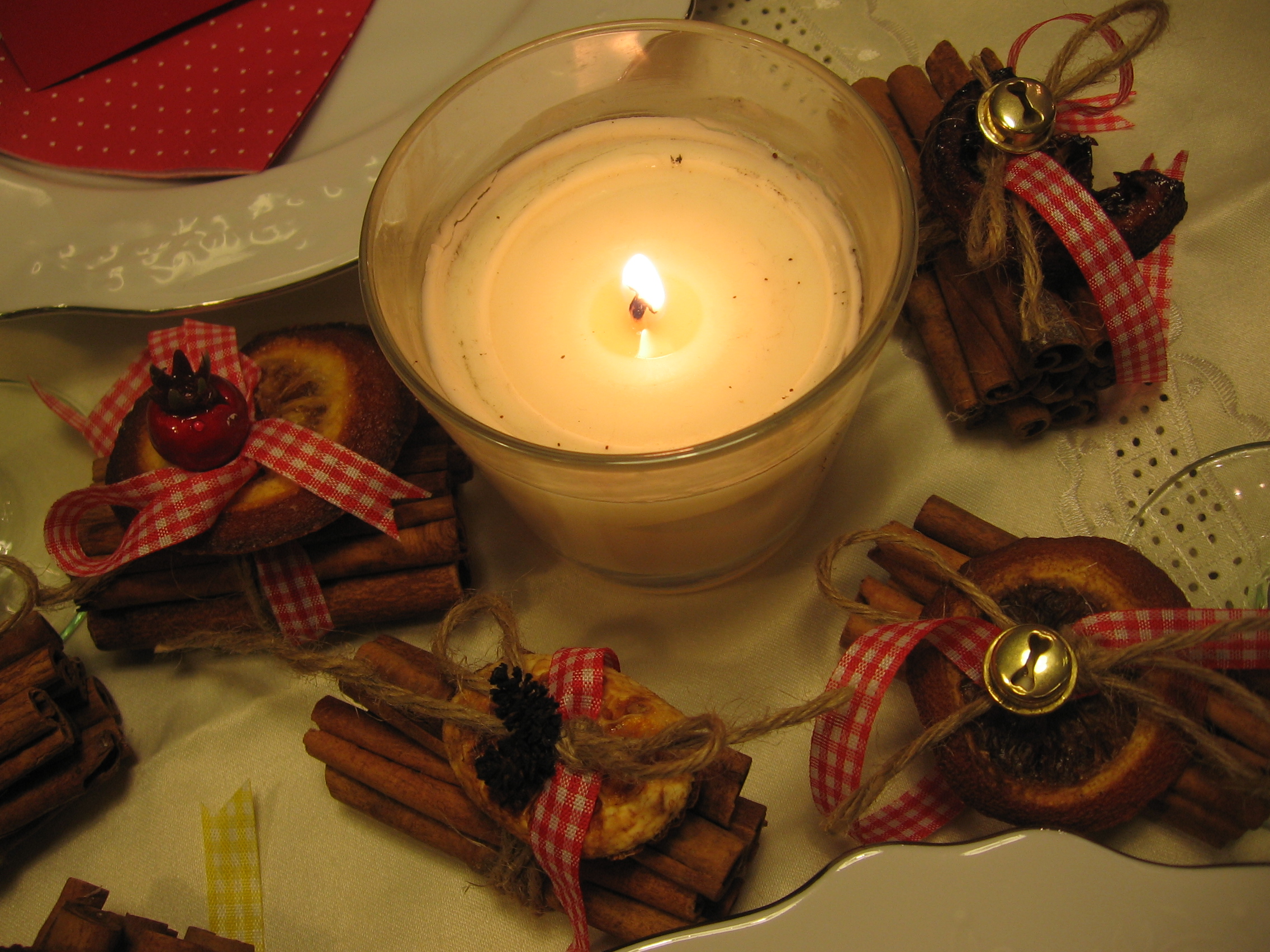 Κάπως έτσι στόλισα κι εγώ το δικό μου τραπέζι εψές, για το Χριστουγεννιάτικο δείπνο που μαγείρεψα για τις συναδέλφισσές μου, και δώρισα σε κάθε μια και από ένα ματσάκι κανέλες.
