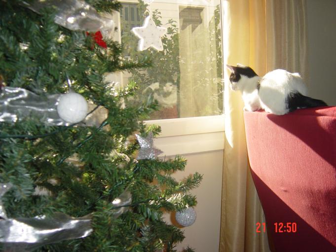 Του άρεσε πολύ να κάθεται εκεί και να χαζεύει στο παράθυρο με τις ώρες.. Τώρα πια.... δεν χωράει ολόκληρος.. όταν ανεβαίνει (πρέπει να κάθεται κάποιος για να κρατάει το βάρος) ο μισός πισινός του είναι έξω....