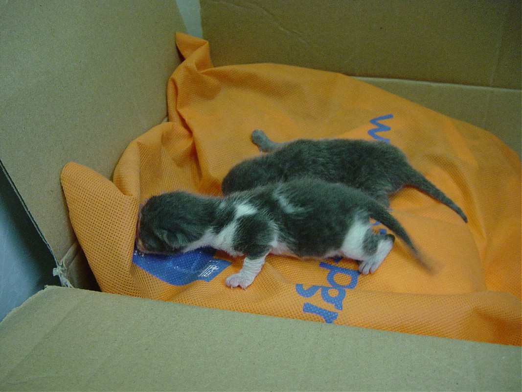 Βρήκα σήμερα το πρωι 2 γατάκια σε σακούλα στα σκουπίδια. Ένα τρίτο είχε πεθάνει δυστυχως. Τα ταιζω από το πρωί με ειδ.γάλα, μπιμπερό, τα έχω σε κούτα με θερμοφόρα, τους έβαλα και λάμπα από πάνω.Το κάνω πρώτη φορά αυτό αλλά ευτυχώς είναι πολύς ο κόσμος που ξέρει κ δίνει οδηγίες.