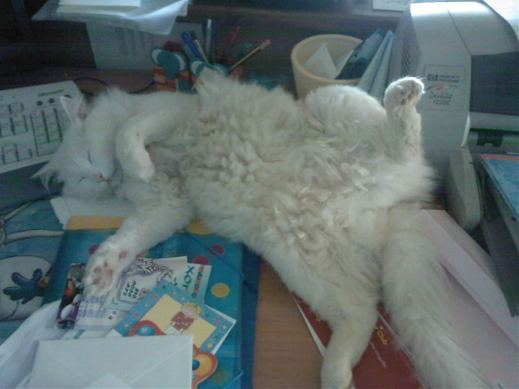 Το ασπρο γκρι ειναι απιστευτο χουρχουριζει σαν τρελο.κανει ζυμαρακια και γυρναει να χαιδεψω την κοιλουμπα του