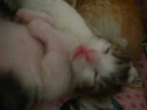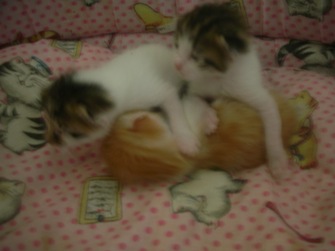 Πάντως κρεββατ'ακι μεγαλύτερο της έχουνε. Σήμερα πήγα στο σπίτι της γειτόνισσας και έμεινα πολύ ώρα να παρακολουθώ τις κινήσεις της Beauty και τα μωρά της...