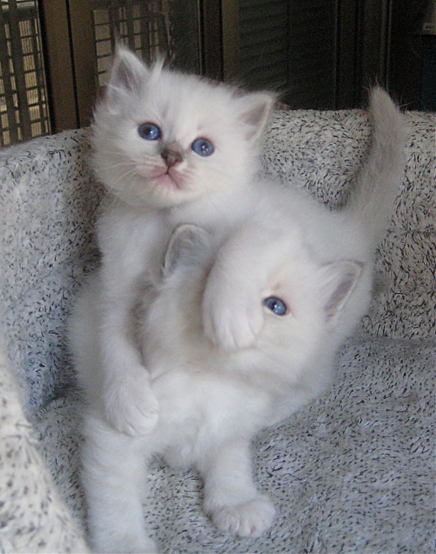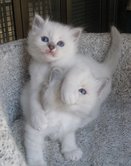 Σημερα μου εστειλε η εκτροφεας κι αλλες φωτο Τωρα πια μοιαζουν με γατακια. Ακομη ομως δεν ξερουμε ποιο απο τα 2 blue tabby θα ειναι δικο μου, αφου δεν εχουν σκουρηνει αρκετα για να φαινονατι καθαρα τα markings. Παντως απο ο,τι λεει και τα δυο φαινονται να εχουν πολυ καλη μορφολογια, οσο μπορει να δει σε αυτην την ηλικια. Σημείωση: Το μήνυμα αυτό γράφτηκε 16 χρόνια πριν. Ο συντάκτης του πιθανόν να έχει αλλάξει απόψεις έκτοτε.