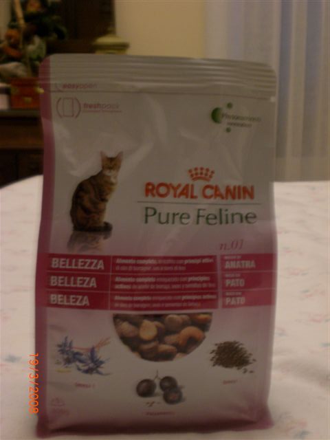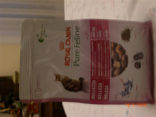 Παιδιά, πήγα χθες στο pet city να πάρω την Bellezza (= ομορφιά στα Ιταλικά) της Royal Canin από τη σειρά pure feline όπου βοηθά την τρίχα την εποχή της αλλαγής αφού είναι εμπλουτισμένη με "ω" κλπ. (παρεπιπτόντως η γεύση τους άρεσε πολύ)...Και μαντέψτε τι άλλο βρήκα!