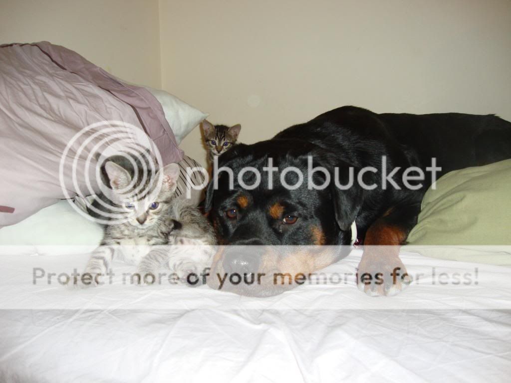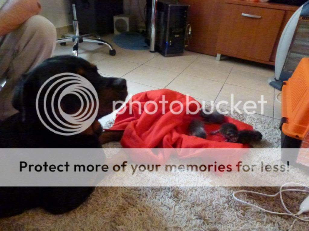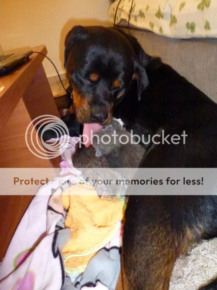 Καλά, το σκυλουμπάκι είναι όλα τα λεφτά!!! Το πήρε πολύ προσωπικά να προσέχει τα μωράκια! Η φωτογραφία που τα γλύφει είναι απίστευτη!!!! :P :bigarmhug