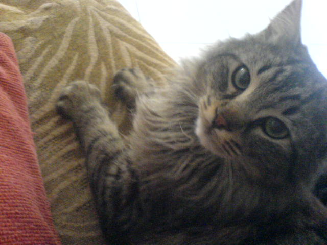 Τελικά, δεν ξέρω τίποτα από μορφολογία γάτας! Ούτε Μέιν Κουν, ούτε Νορβηγικού Δάσους. Μου είπε η γιατρός ότι έχει πολλά στοιχεία από Σιβηρίας, απλά θα έπρεπε να είναι πιο μεγαλόσωπος στην ηλικία του. Είναι κοιλαράς βέβαια και ζυγίζει σχεδόν 5 κιλά!