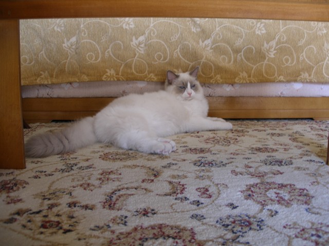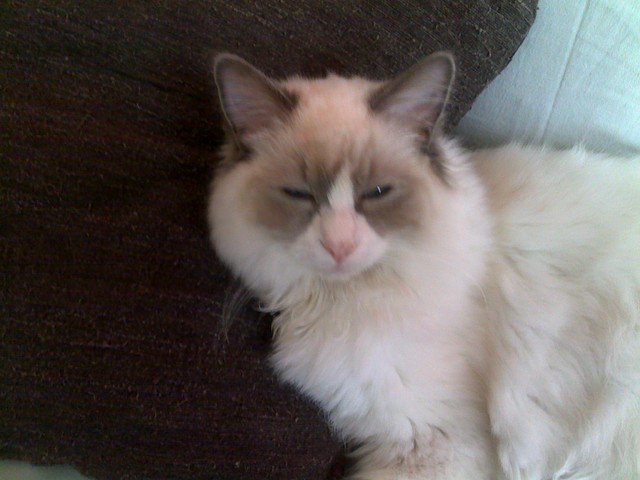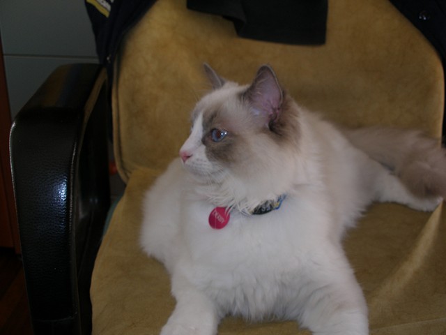 Το βράδυ θέλει να κοιμάται στον σβέρκο μου !!! και όταν δυσανασχετήσω πολύ… στο προσκέφαλο μου. Βέβαια όλα αυτά γίνονται αφού με πάρει ο ύπνος, γιατί πρίν - σαν σωστός κύριος - αναπαύεται στην πολυθρόνα του γραφείου μου .