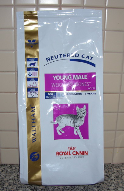 Η ειδική ξηρή τροφή της RoyalCanin απευθύνεται σε στειρωμένους αρσενικούς γάτους, από την ημέρα της στείρωσης και μέχρι τα 7 τους χρόνια. Η σύνθεσή της προλαμβάνει την παχυσαρκία και τις παθήσεις του ουροποιητικού συστήματος, στις οποίες ειδικά οι αρσενικοί στειρωμένοι γάτοι είναι περισσότερο ευαίσθητοι (ο δείκτης S/O που αναγράφεται στη συσκευασία σημαίνει ότι προλαμβάνονται ο σχηματισμός λίθων από στρουβίτη και λίθων από οξαλικό ασβέστιο). Η τροφή αυτή είναι μέρος της σειράς VeterinaryDiet της RoyalCanin και διακινείται μόνο μέσω κτηνιάτρων, δεν θα τη βρείτε δηλαδή σε petshop.