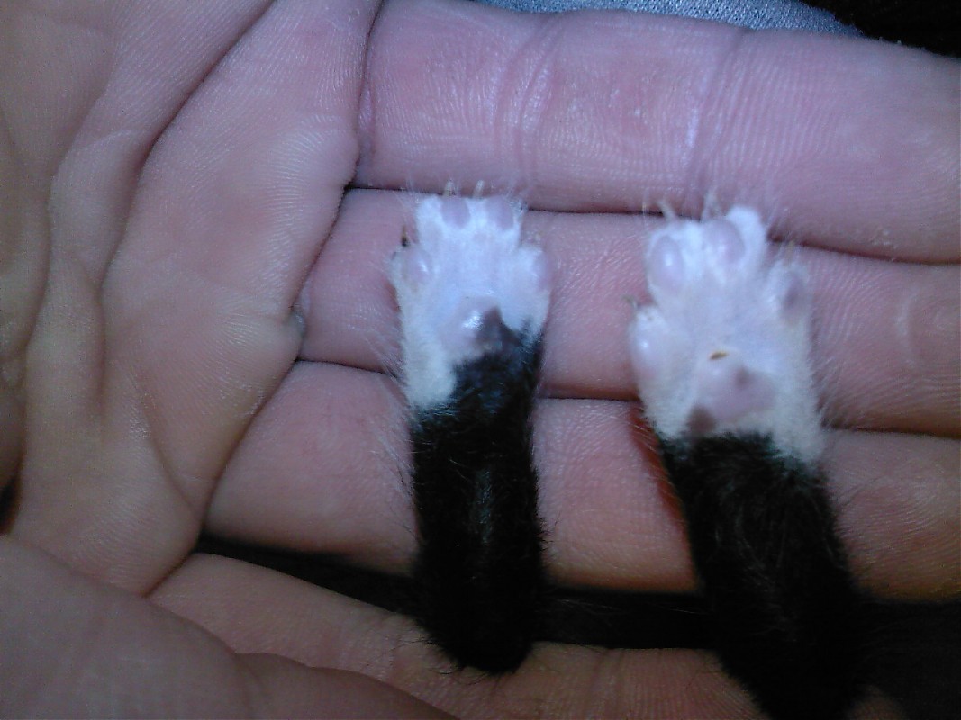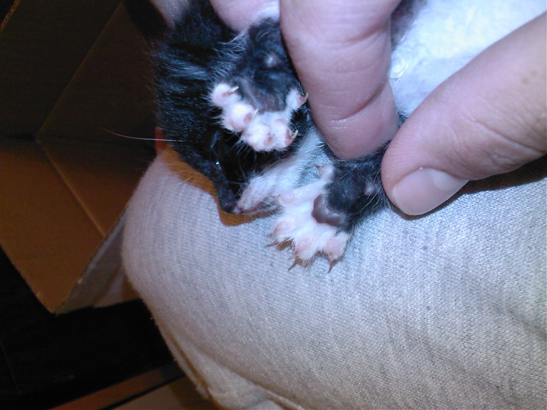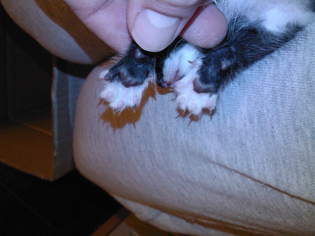 Είπα στον γιατρό ότι δεν τρώει από το γάλα που μου έδωσε και ότι ούτε εβαπορέ που αραιώνω πίνει με ευχαρίστηση. Το ταΐζω με το ζόρι. Θα το πάω να το εξετάσει και πάλι μεθαύριο εκτός και αν δω επιδείνωση αύριο. Κάτι άλλο που θα ήθελα να ρωτήσω και να μου απαντήσει εάν κάποιος-κάποια γνωρίζει. Τα πατουσάκια του στο εσωτερικό όπως βλέπετε και στις φωτογραφίες δεν είναι πια ροζ και στα τρία ποδαράκια του έχουν μαυρίσει. Το είπα τηλεφωνικά στον γιατρό και που μου είπε μήπως παίρνουν φυσιολογικά αυτό το χρώμα. Γνωρίζει κανείς εάν είναι κάτι ανησυχητικό;Παίζει μήπως να ήταν από πριν και να μην το είχα προσέξει?